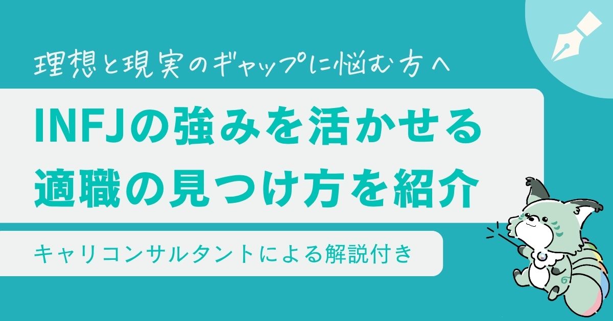 チルティ今まで多くのHSPやINFJなど内向型の就職活動をサポートしたキャリアコンサルタントの筆者が、INFJの強みを活かせる職種も紹介してくれるよ。