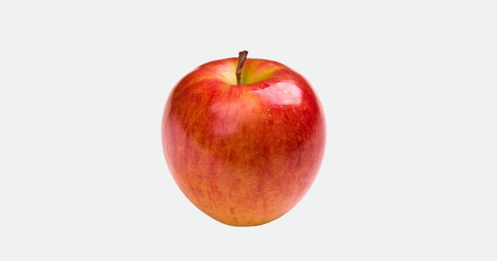 • このりんごの赤と、持っているポーチの赤は似ているな